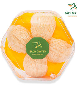 | Đặc trưng | Được lấy phần bụng của tổ yến, làm sạch lông và tạo hình, vẫn giữ nguyên giá trị dinh dưỡng cao, sợi nhiều.
